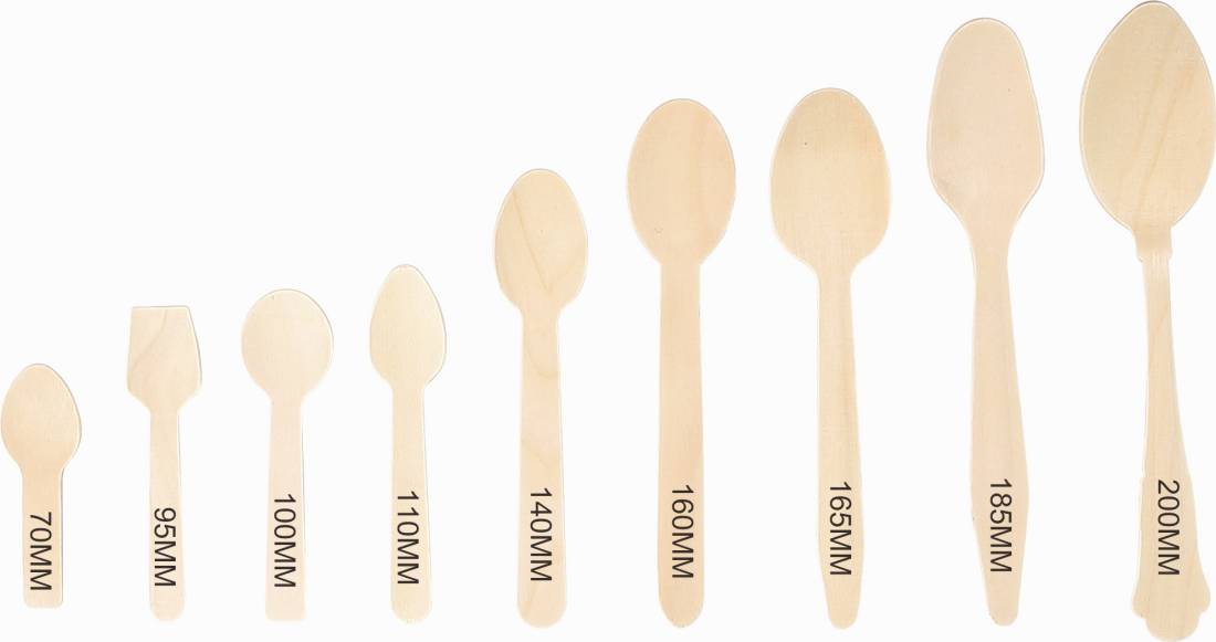 1. Nuestro juego de cubiertos de madera desechables está hecho de madera de haya de primera calidad y tiene diferentes tamaños, desde 95 hasta 185 mm.